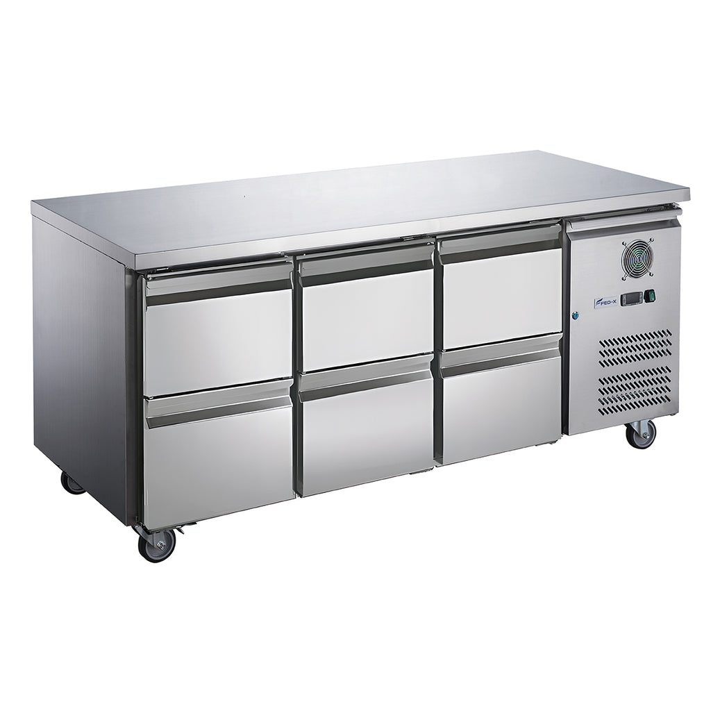 FED-X S/S Six-Door Bench Fridge with Drawers - XUB7C18S3D