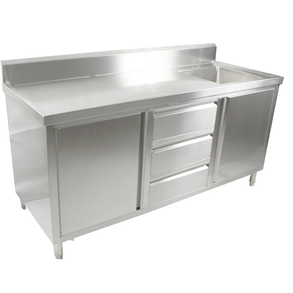 ALL STAINLESS STEEL KITCHEN TIDY CABINET WITH SINK, DOORS & DRAWERS